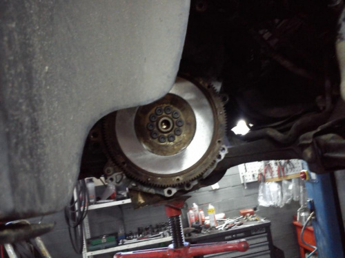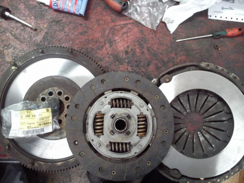 Grzechem nie byłoby przy takiej okazji zrobić kompletu, zatem wpadło nowe sprzęgło wraz z łożyskiem oporowym. Silnik ma rozrząd po stronie skrzyni i wszystko i tak było na wierzchu. Dwumas niby nie był do wymiany, więc został.